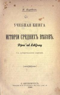 Николай Иванович Кареев (1850-1931) - известный русский историк, профессор новой истории Петербургского университета. Кроме серьёзных исторических, философских и социологических исследований, Кареев прославился как автор гимназических учебников по всеобщей истории, пользовавшихся огромной популярностью в 1900-1917 годах. Так, «Учебная книга средних веков» выдержала 9 изданий, первое из которых предлагается Вашему вниманию.