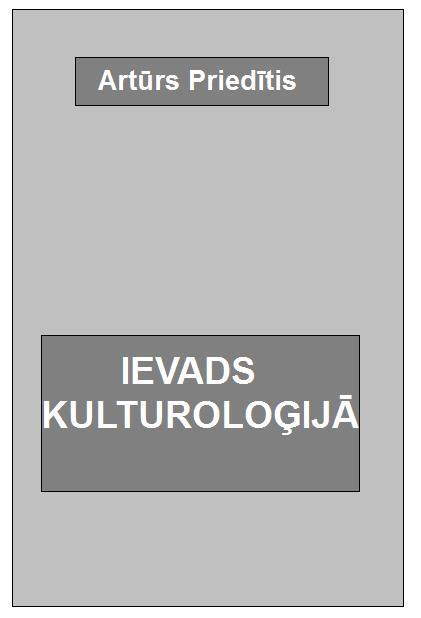 Arturs PriedītisIevads kulturologijā.Kultūras teorija un Kultūras vēsture.Pirmā grāmata latviešu valodā, kurā sistematizēti aplūkoti kultūras teorijas un kultūras vēstures teorētiskie un metodoloģiskie jautājumi. No kulturoloģijas vie­dokļa sniegts pārskats par pasaules kultūru vēsturisko mantojumu. Grāmatu var izmantot kā mācību līdzekli.Daugavpils, 2003Kolekcija “Kulturoloģija”Latvijas kultūras vēstureLatvijas kultūras biogrāfiskā vārdnīca Ievads kulturoloģijāRainis: intelektuālā biogrāfijaMakets Marina StockaVāka noformējums Genādijs Linsfailu izveidojis Imants Ločmelis imantslochmelis@inbox.lvPriedītis A. Ievads kulturoloģijā. Kultūras teorija un kultūras vesture. Daugavpils: A.K.A., 2003.228 lpp. © A.K.A., 2003
