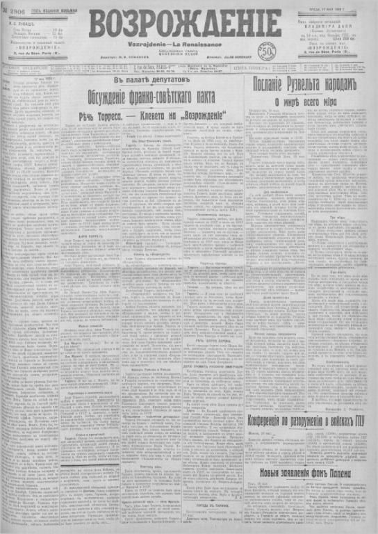 Задуманная как первая в серии, эта статья о немецком национал-социализме была опубликована 17 мая 1933 г. в № 2906 парижской эмигрантской газеты «Возрождение», но продолжения не последовало.