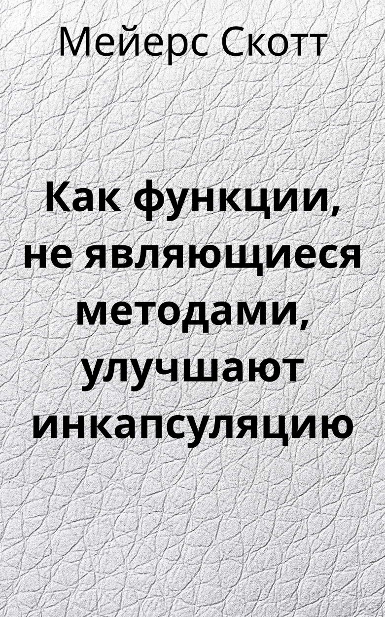 Когда приходится инкапсулировать, то иногда лучше меньше, чем большеЯ начну со следующего утверждения: Если вы пишете функцию, которая может быть выполнена или как метод класса, или быть внешней по отношению к классу, Вы должны предпочесть ее реализацию без использования метода. Такое решение увеличивает инкапсуляцию класса. Когда Вы думаете об использовании инкапсуляции, Вы должны думать том, чтобы не использовать методы.Удивлены? Читайте дальше.