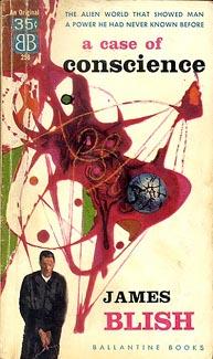 A Case of Conscience is a science fiction novel by James Blish, first published in 1958. It is the story of a Jesuit who investigates an alien race that has no religion; they are completely without any concept of God, an afterlife, or the idea of sin; and the species evolves through several forms through the course of its life cycle. The story was originally published as a novella in 1953, and later extended to novel-length, of which the first part is the original novella. The novel is the first part of Blish's thematic “After Such Knowledge” trilogy, followed by Black Easter/The Day After Judgment and Dr Mirabilis.The story is unusual in several respects. Few science fiction stories of the time attempted religious themes, and still fewer did this with Catholicism. Some of the first part is taken up with the Jesuit's attempt to solve a puzzle, a long description of scandalous intrigue between various pseudonymous characters. As he is about to leave for Earth, he realizes the puzzle is soluble. The puzzle is contained within the pages of Finnegans Wake, by James Joyce.Many reacted negatively to the story, but surprisingly few educated Catholics were among them. One even sent James Blish a copy of the actual Church guidelines for dealing with extraterrestrials. These are not detailed, but merely suggest overall strategy based on whether the beings have souls or not, and if they have them, whether they are fallen like humans, or exist in a state of grace.Won Hugo Award for Best Novel in 1959.