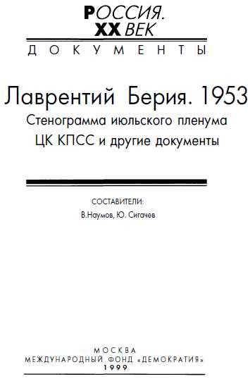 Лаврентий Берия. 1953. Стенограмма июльского пленума ЦК КПСС и другие документы. (РОССИЯ. XX ВЕК ДОКУМЕНТЫ[2])