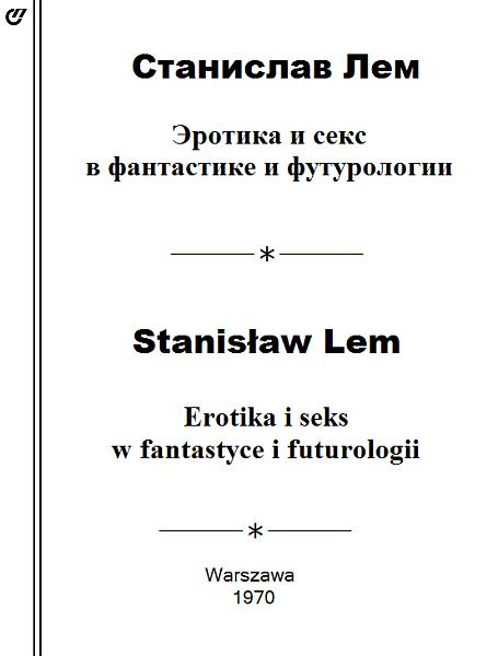 Станислав Лем — польский писатель, один из признанных лидеров мировой фантастики. На русском языке опубликованы романы «Астронавты», «Магелланово облако», «Возвращение со звезд», «Солярис», «Непобедимый», «Эдем», «Голос неба», циклы рассказов. Известен также как философ, футуролог. У нас в стране в свое время широкую известность получил его аналитический и футурологический труд «Сумма технологии», эссе из циклов «Идеальный вакуум», «Мнимая величина».Перевод с польского Л. Резниченко.Перевод осуществлен по изданию: S. Lem. Erotika i seks w fantastyce i futurologii. Etyka, 7. Warszawa. 1970. s. 101–128.В дополненном виде эссе вошло в книгу «Фантастика и Футурология».