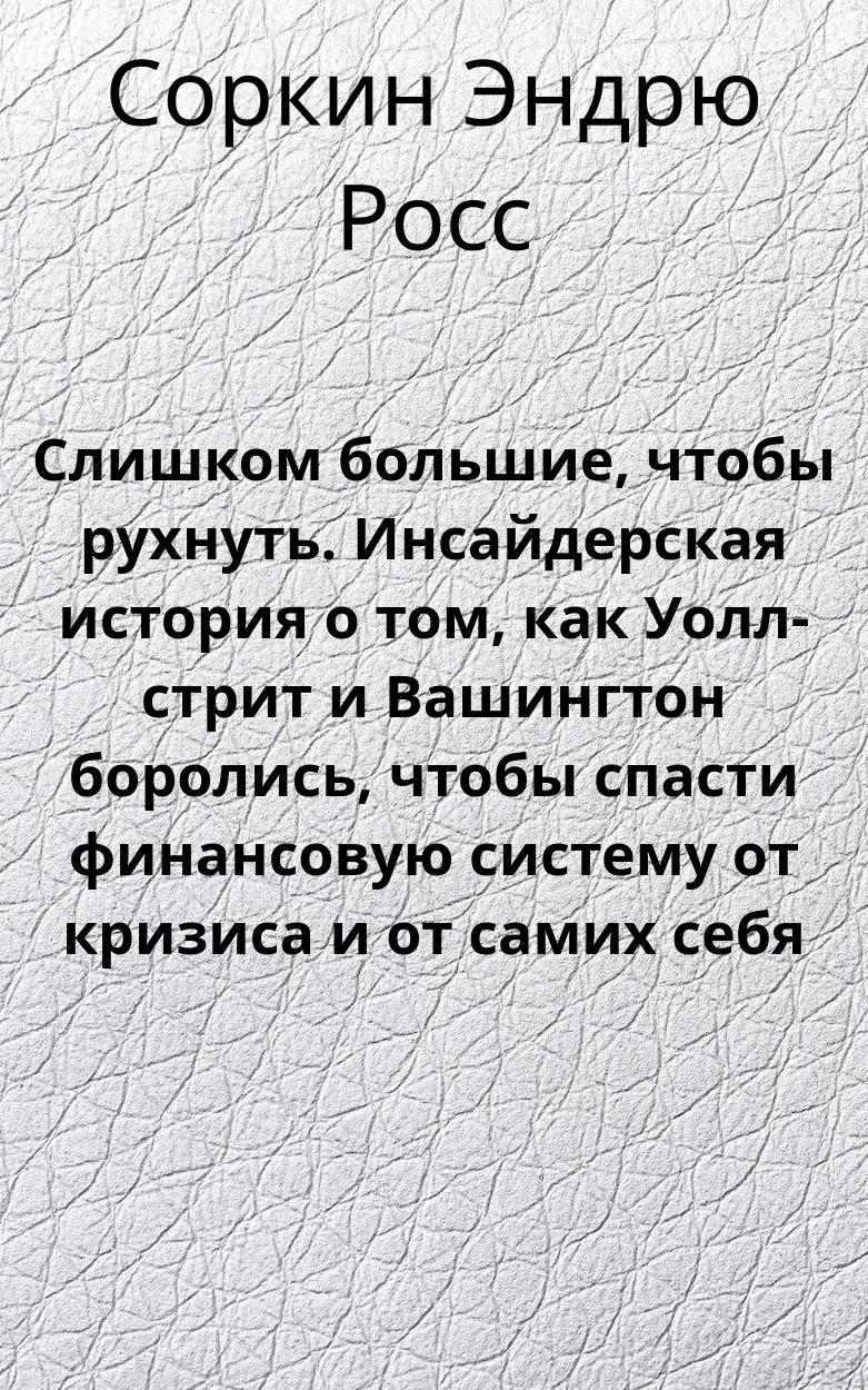 Слишком большие, чтобы рухнуть. Инсайдерская история о том, как Уолл-стрит и Вашингтон боролись, чтобы спасти финансовую систему от кризиса и от самих себя