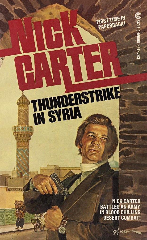 DEATH IN THE DESERT!The Syrian Liberation Army, a fanatical group driven by “The Hawk,” are expanding their activities — if they succeed a tanker will explode in New York Harbor wasting a million lives! And that’ll be just the beginning!Nick Carter enlists double agent Miriam Kamel to lead him to the terrorists’ desert camp under the spectacular ruins of The Tower of Lions. Miriam’s an expert in the arts of love and war — but Nick wonders if she’s as clever at deceit...Under the chilling desert moon, amid the dying cries of “The Hawk’s” torture victims, Nick is trapped in a nerve shattering battle. His Israeli friends call him Lamedvovnik — the secret saint. But as time runs short N-3 could quickly become another kind of “saint” — a very dead martyr!