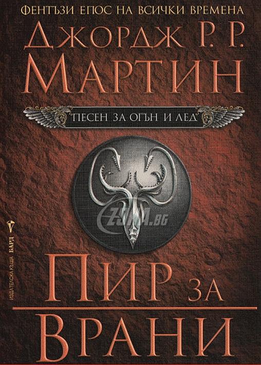 Четвърта книга от “Песен за огън и лед”Толкова зли герои, че могат да изядат Борджиите!“Врани ще се бият над плътта на мъртвец и ще се убиват за очите му”.Малко книги в такава степен са пленявали въображението и са спечелвали предаността и възхвалата на читатели и критици по целия свят, като монументално епичния цикъл върхово фентъзи на Джордж Р. Р Мартин.Ето, че с “Пир за врани” Мартин ни предлага дългоочакваната четвърта книга от своята великолепна поредица. Разкъсваното от войни кралство най-сетне се оказва на прага на мира... за да се хвърли в пропастта на още по-ужасно унищожение.Изглежда твърде хубаво, за да е истина. Войната на петимата крале най-сетне е замряла в тревожно затишие, след като Домът на Ланистър и техните съюзници са привидните победители.Но като след всяка съдбоносна борба, скоро започват да се сбират оцелели, разбойници, ренегати и лешояди, за да разровят костите на мъртвите и да се бият за плячка над издъхващите.Време е мъдрите и тласканите от амбиция, коварните и силните да придобият опита, силата и магията, за да оцелеят в предстоящите сурови и жестоки времена. Време е за благородници и простолюдие, за войници и чародеи, за платени убийци и мъдреци да се сплотят и да заложат своите съдби... и живот. Защото много са гостите на пира за врани... но малцина са оцелелите.