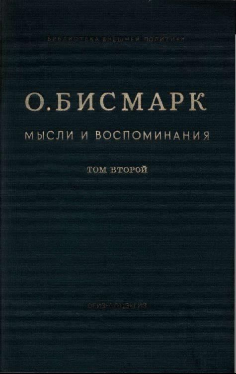 Русский перевод второго тома книги Бисмарка «Мысли и воспоминания» сверен по немецкому изданию: Otto Furst von Bismarck, Gedaiiken und Erinnerungen, Neue Ausgabe, Zweiter Band, Stuttgart und Berlin, 1922.Отмеченные звездочкой (*) подстрочные примечания, за исключением специально оговоренных, принадлежат Бисмарку. Необходимые для понимания текста слова, вставленные немецким издателем или редакцией русского перевода, заключены в квадратные скобки [ ],В переводе второго тома книги Бисмарка «Мысли и воспоминания» на русский язык принимали участие Я.А. Горкина и Р.А. Розенталь.Примечания составили В.В. Альтман и В Д. Вейс.В редактировании русского перевода второго тома книги Бисмарка «Мысли и воспоминания» и примечаний к нему принимали участие: В М. Турок, В.А. Гиндин, В.С. Троянкер и по главам XIX — XXIII Б.Г. Вебер.