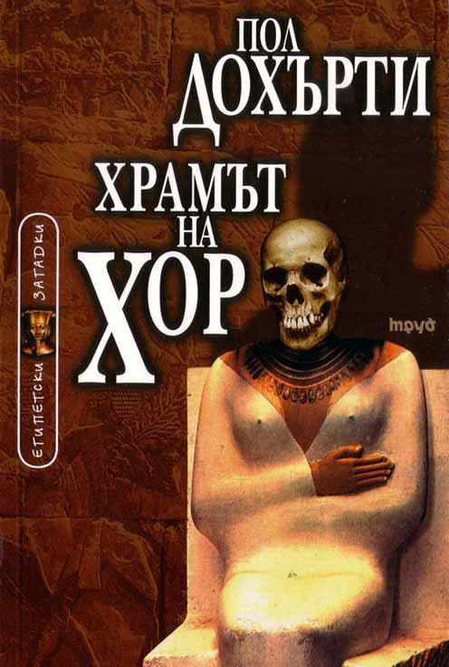 Още с дебютната книга „Маската на Ра“ криминалната серия „Египетски загадки“ се утвърди като достоен приемник на превърналите се в класика „Китайски загадки“ на Робърт ван Хюлик и „Японски загадки“ на Лора Джо Роуланд.Британецът Пол Дохърти, професионален историк и ерудит в областта на египтологията, чрез екзотичните си сюжети увлекателно пресъздава една от най-непознатите вълнуващи епохи от историята на древен Египет.На власт са фараоните на Новото царство (XVI–XI в. пр.Хр.), а дъщерята на великия Тутмос I — Хатусу се бори за надмощие. В „Храмът на Хор“, втората част на поредицата „Египетски загадки“, кълбото на политическата конспирация отново трябва да бъде разплетено от египетския Шерлок Холмс — съдията Амеротке. В Тива, столицата на могъщото египетско царство, един след друг гинат учени, звездобройци, жреци, архивари и техните слуги. Кървавите екзекуции заплашват да пометат крехката хегемония на владетелката Хатусу. Някой всячески се мъчи да дискредитира еманципираната фараонка. А тронът й и без това се клати заради несъгласието на догматичната аристокрация Египет да бъде управляван от жена. Хатусу всъщност е антична феминистка — тя протяга ръце към короната не от себична алчност, а за да защити достойнството си на фараонска дъщеря и да докаже космогоничната си предопределеност да седне на трона. „Храмът на Хор“ със сигурност ще задоволи претенциите на ценителите на изисканото криминале в стил Конан Дойл и Агата Кристи, но без съмнение ще допадне и на феновете на екшъна и зрелищните сюжети.В книгата има и психология, и мистерия, и каскади, и екзотика, и възмездие. „Египетски загадки“ безспорно има и поучителен ефект: Пол Дохърти доказва, че политическата конспирация е старинно занятие и днешните интриги във върховете на властта по света и у нас си имат своя исторически праобраз.