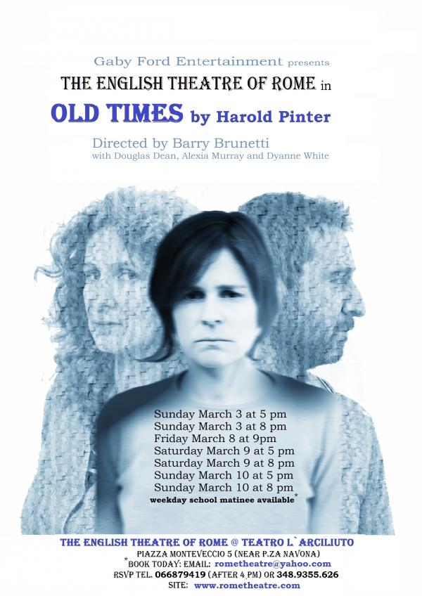 Пьеса «Былые времена» являет собой характерный пример так называемой «пьесы-воспоминания». Три персонажа, погружённых в ностальгическую атмосферу воспоминаний — Дили, его жена Кейт и её подруга детства Анна — в запутанной последовательности появляются то в реальном сценическом действии, то в воспоминаниях друг друга.