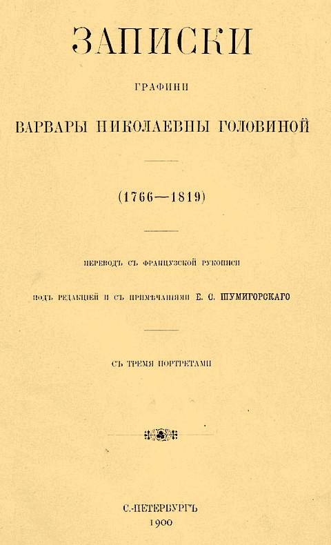 Записки графини Варвары Николаевны Головиной (1766–1819)