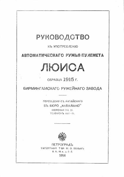Руководство къ употребленію автоматическаго ружья-пулемета Люиса образца 1915 г. Бирмингамскаго ружейнаго завода