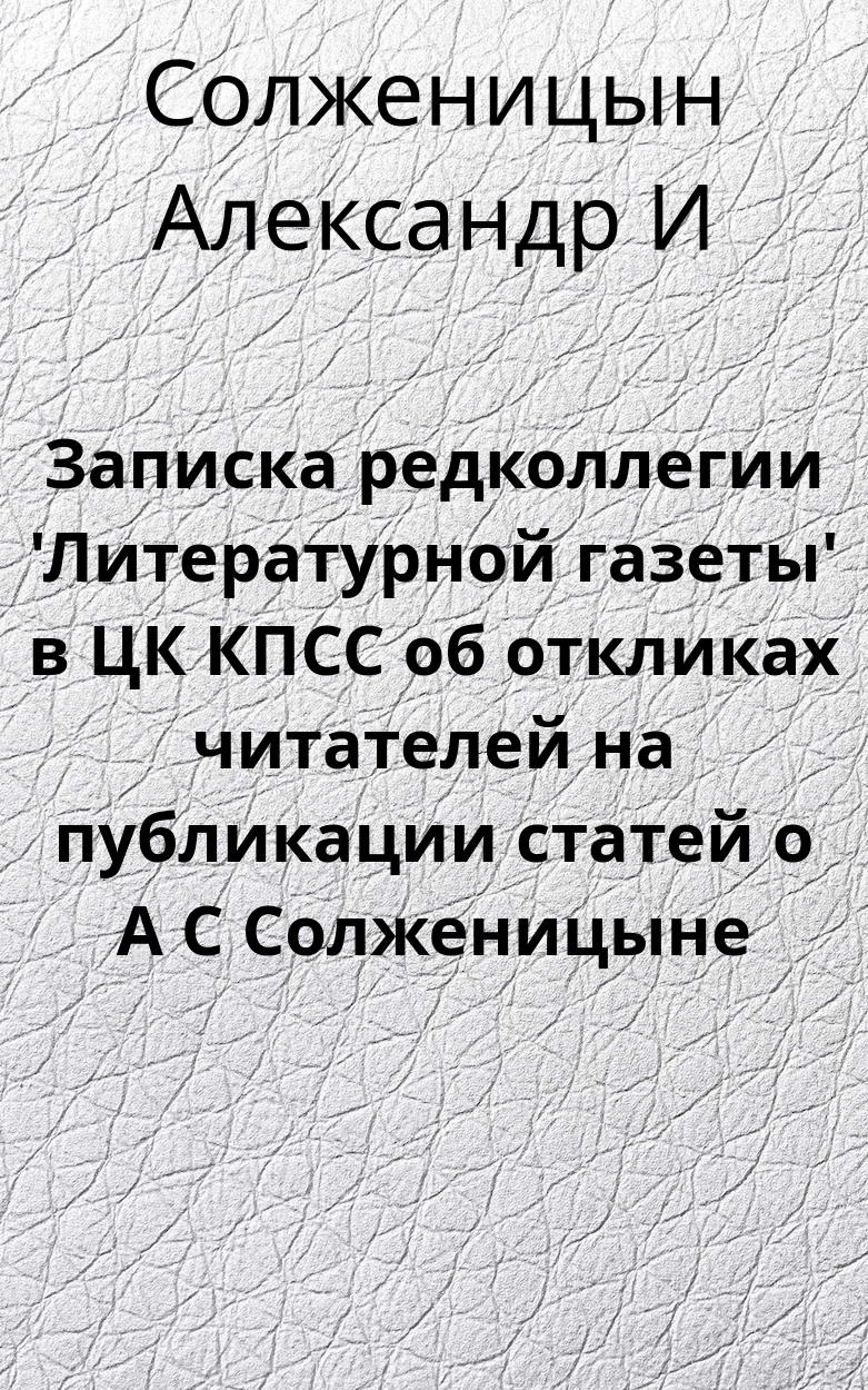 Записка редколлегии 'Литературной газеты' в ЦК КПСС об откликах читателей на публикации статей о А С Солженицыне