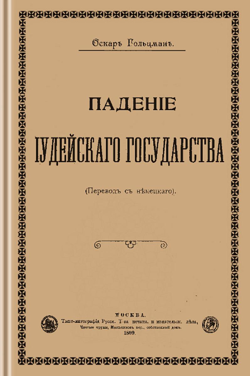 Фундаментальный труд «Падение Иудейского государства» был опубликован в Германии в 1888 году. Изначально он задумывался как часть масштабного проекта по изданию монографий по всеобщей истории, которым руководил знаменитый немецкий ученый В. Онкен. Труд профессора Гольцмана считается одним из самых авторитетных исследований XIX века по древней истории еврейского народа. В своей работе Гольцман обращается к эпохе Второго Храма и рассматривает период с III века до н. э., когда Палестина входила в состав эллинистических государств Птолемеев и Селевкидов, до первой Иудейской войны (66-71 годы). В предисловии к русскому изданию переводчик писал: «Беспристрастие автора и самостоятельность его при освещении описываемых событий искупают в значительной мере некоторые недостатки изложения. При бедности литературы по еврейской истории на русском языке появление в свет предлагаемого сочинения, вряд ли окажется лишним». Над текстом русского издания 1899 года работал известный русский востоковед-гебраист Г.Г. Генкель - переводчик «Иудейских древностей» Иосифа Флавия и других известных работ по истории еврейского народа