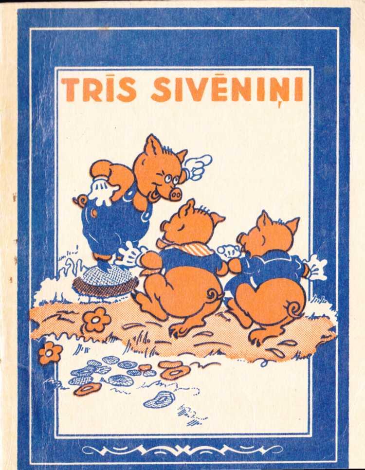 Trīs sivēniņiValtera Disneja studijas teksts un zīmējumiNo krievu valodas tulkojusi Austra Egle Dzejas latviskojis Aleksandrs ČaksNoskanējis grāmatu un failu izveidojis Imants Ločmelis imantslochmelis@inbox.lvRīga 1990Три Поросенка Обработка Сергея МихалковаПа латышском языкеNr. ('00061. Formāls 70X108/32. Meliens 100 000 eks. Pasūt. Nr. 102043. Līguma cena Iespiesta Rīgas Paraugtipogrāfijā, 226004, Rigā, Vienības gatvē II.