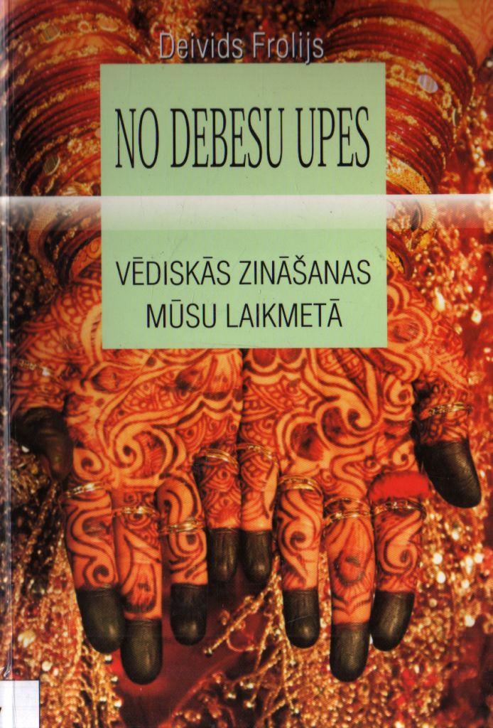 Deivids FrolijsNo debesu upesVĒDISKĀS ZINĀŠANAS MŪSU LAIKMETĀNo angļu valodas tulkojusi Velga VīganteLIETUSDĀRZSMūsdienu pasaulē ir visai daudz informācijaspar vēdiskajām zināšanām. Šķiet, ik uz soļa sastopamies ar jēdzieniem joga, karma, avatārs vai Ājurvēda. Taču pat tiem, kuri interesējas par Austrumu garīgajām mācībām, nereti nākas atzīt, ka daudzi viņu priekšstati ir neskaidri un virspusīgi.Šī grāmata koncentrēti, saprotami, draudzīgi sniedz ieskatu vēdiskajās zināšanās un atklāj, cik tās ir bagātīgas, universālas un cilvēkam vajadzīgas.Grāmatas autors Deivids Frolijs ir mūsdienīgs skolotājs, kurš pamatīgi apguvis seno garīgo mantojumu un pratis to saistoši izklāstīt. Viņš ir Ājurvēdas dziednieks, Vēdu astrologs, Jogas un meditācijas skolotājs un sanskrita pārzinātājs.Vēdiskā zinātne ir garīgo zināšanu sistēma, kas aptver visas dzīves jomas. Pirmkārt, tā sniedz mums zināšanas, kā atbrīvoties jeb izprast sevi.Redaktore MĀRA CIELĒNAMĀRA GARJĀŅA makets un vāka dizainsSIA "LIETUSDĀRZS" 2010Reģ. nr. 50003835821apgads.lietusdarzs@gmail.comIespiests tipogrāfijā "Dardedze Hologrāfija"© Velga Vīgante, tulkojums no angļu valodas, 2010 © Apgāds "Lietusdārzs", 2010Noskannējis grāmatu un failu izveidojis Imants LočmelisISBN 978-9934-8144-7-1