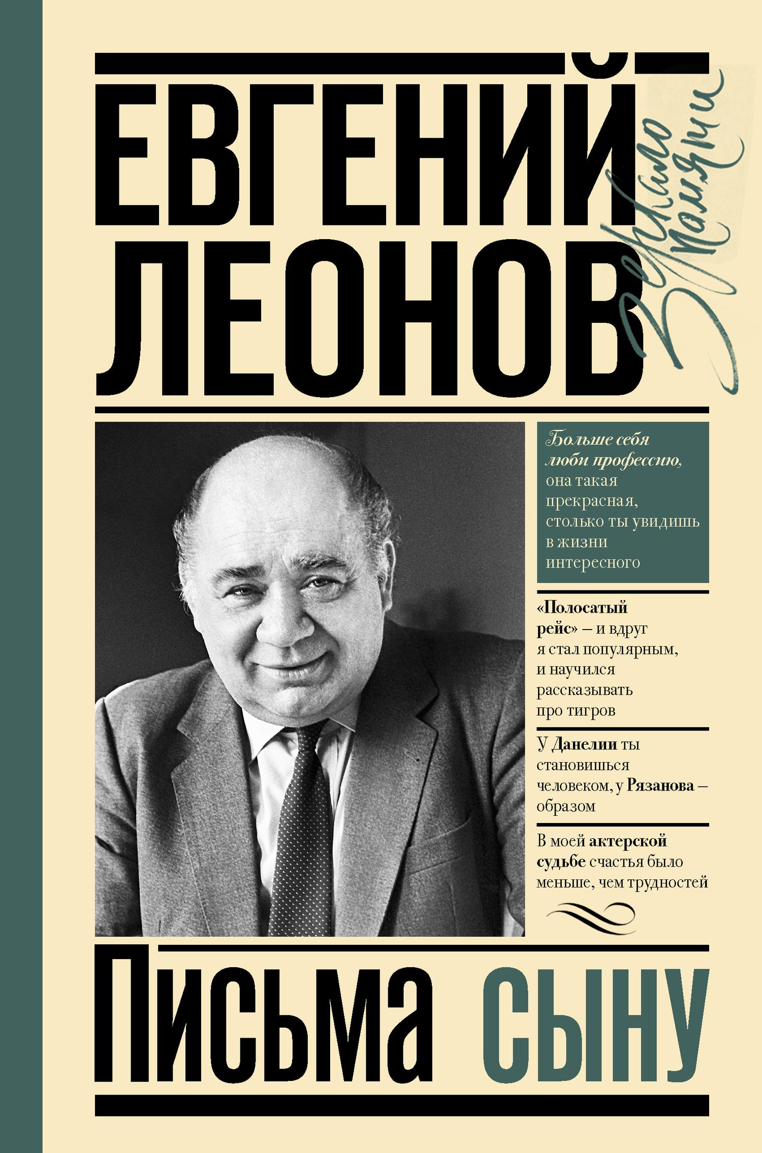 При упоминании имени Евгения Леонова перед глазами сразу появляется его доброе, улыбающееся лицо и возникают герои, которых он сыграл в фильмах «Полосатый рейс», «Зигзаг удачи», «Белорусский вокзал», «Старший сын», «Джентльмены удачи», «Обыкновенное чудо», «Осенний марафон», «Кин-дза-дза» и других. Необычайно веселый, сердечный, жизнерадостный человек, Е. Леонов неизменно поднимает кинозрителям настроение, наполняет их оптимизмом, заряжает творческой энергией. А в жизни он был человеком задумчивым, склонным к размышлениям, самоанализу. И в своей книге он рассказывает о себе, о своей работе в кино и театрах, о друзьях и коллегах по цеху – Е. Урбанском, О. Басилашвили, А. Папанове, А. Гончарове, М. Яншине, М. Захарове, Г. Данелия… Прочитав его «Письма сыну», искрящиеся юмором, добротой и в то же время довольно серьезные, можно понять, как воспитывать детей, чтобы они выросли достойными людьми. |