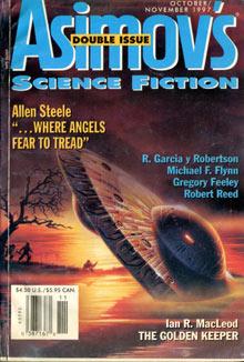 The author’s latest novel, A King of Infinite Space, is just out from HarperPrism. His most recent story for us, “The Death of Captain Future” (October 1995), won the 1996 Hugo award for Best Novella, and was a finalist for the Nebula award. Mr. Steele was born in Nashville, Tennessee, and spent summers on the same lake where much of the drama in the following fast-paced and careering adventure story occurs. In this breathtaking tale he deftly shows us why there truly are times and places, Where Angels Fear to Thread.