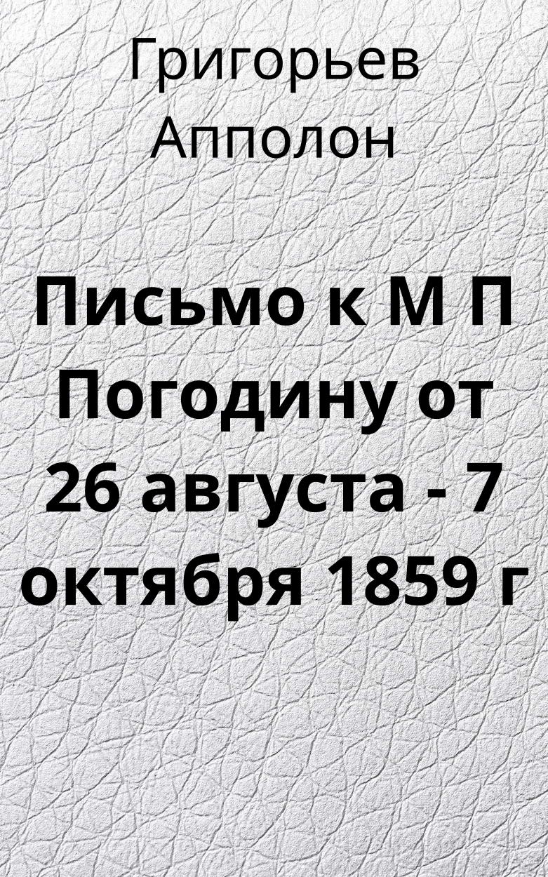 Письмо к M П Погодину от 26 августа - 7 октября 1859 г