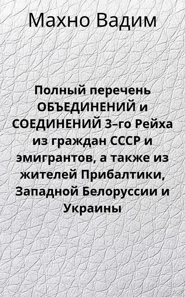 Полный перечень ОБЪЕДИНЕНИЙ и СОЕДИНЕНИЙ 3–го Рейха из граждан СССР и эмигрантов, а также из жителей Прибалтики, Западной Белоруссии и Украины