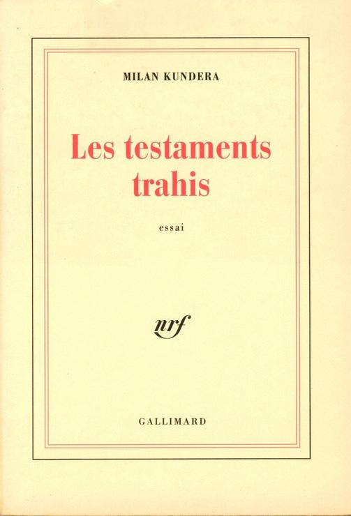 Testamentos Traicionados es escrito como una novela: los mismos personajes aparecen y reaparecén a lo largo de las nueve partes del libro, así como los temas principales que preocupan al autor. Kundera una vez más, celebra el arte de la novela, desde su nacimiento con un espíritu de humor único a la cultura y sensibilidad europea – ilustrada por algunos maravillosos ejemplos del trabajo de Rabelais y Cervantes – a través de su florecimiento en siglos sucesivos. Él anota los misterios de la novela musical y la evolución paralela (pero no simultánea) de las dos artes en occidente, así como la sabiduría particular que la novela ofrece acerca de la existencia humana. El arte de la traducción es el sujeto de una de las partes del libro, iluminando el significado de su título. Kundera es un apasionado defensor de los derechos morales del artista y el respeto debido a un trabajo de arte y a los deseos de su creador. La traición de ambos – algunos por las más apasionadas partidarios – es uno de los principales temas de Testamentos Traicionados. Testamentos traicionados es un libro rico en ideas acerca del tiempo que estamos viviendo y como nos hemos convertido en lo que actualmente somos, de la cultura occidental en general. Es también un ensayo personal en el cual Kundera discute la experiencia del exilio – y el ataque apasionado de los juicios moral cambiantes y las persecusiones del artista y su arte.