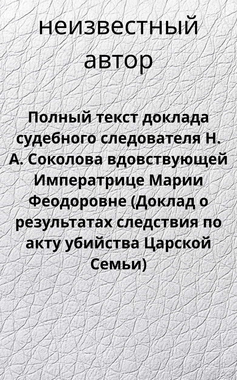 Полный текст доклада судебного следователя Н. А. Соколова вдовствующей Императрице Марии Феодоровне (Доклад о результатах следствия по акту убийства Царской Семьи)