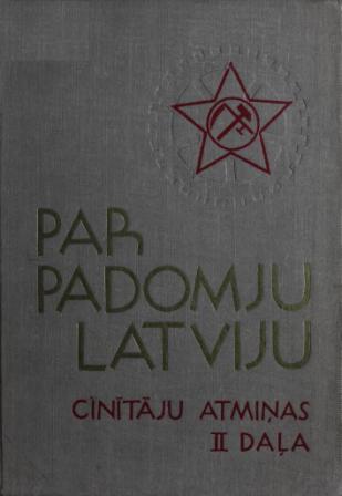 Par Padomju Latviju. Cīnītāju atmiņas. 1918-1919. II daļaKara izpostītajā, okupantu izlaupītajā, ienaidnieka ielenktajā Latvijā darbaļaudis rādīja patiesus darba varonības piemērus. Vajadzēja veltīt milzu pūles cīņai pret badu, vajadzēja likvidēt bezdarbu. Bet, veicot kārtējos neatliekamos darbus, reizē tika projektēti arī diženi plāni sociālistiskās industrializācijas radīšanai (hidroelektrostaciju celšana utt.). Padomju Latvijā vairs nebija vietas vācu melnā bruņinieka pēctečiem. Muižnieku zemes īpašums tika likvidēts, zeme kļuva par darba tautas īpašumu. Sākās jaunu, sociālistisku lielsaimniecību — padomju saimniecību izveidošana. Tika likti pamati sociālistiskās kultūras veidošanai. Protams, veicot šo darbu bez pieredzes, neizpalika arī kļūdas, bet taisnība ir P. Stučkām, kas LKP VI kongresā 1919. gada martā teica: «Mēs nebaidāmies kļūdu, bet cenšamies darbā labot savas kļūdas. Jo pēc katras kļūdas proletariāts top par vienu piedzīvojumu bagātāks, kamēr buržuāzijā ik pēc kuras tieizdevības jūtas par vienu cerību nabagāka.» Par sociālistiskās celtniecības darbu Rīgā savās atmiņas raksta P. Allens; daudz bagātu un interesantu faktu atrodam J. Mergina, J. Skrastiņa, P. Kaģes, Т. Bērziņa, J. Stoķa, E. Pelča, 0. Kalniņa, A. Skrabas, A. Bālmanes, F. Krustkalna, K. Fimbera un citu autoru atmiņās, kas veltītas ciņām un celtniecības darbam atsevišķās pilsētās un pagastos.Latvijas KP CK partijas vēstures institūts —PSKP CK Marksisma-Ļeņinisma institūta filiāleLatvijas Valsts Izdevniecība Rīgā 1959ЗА СОВЕТСКУЮ ЛАТВИЮ Воспоминания борцов 1918—1919 г. Часть IIЛатвийское государственное издательствоНа латышском языке