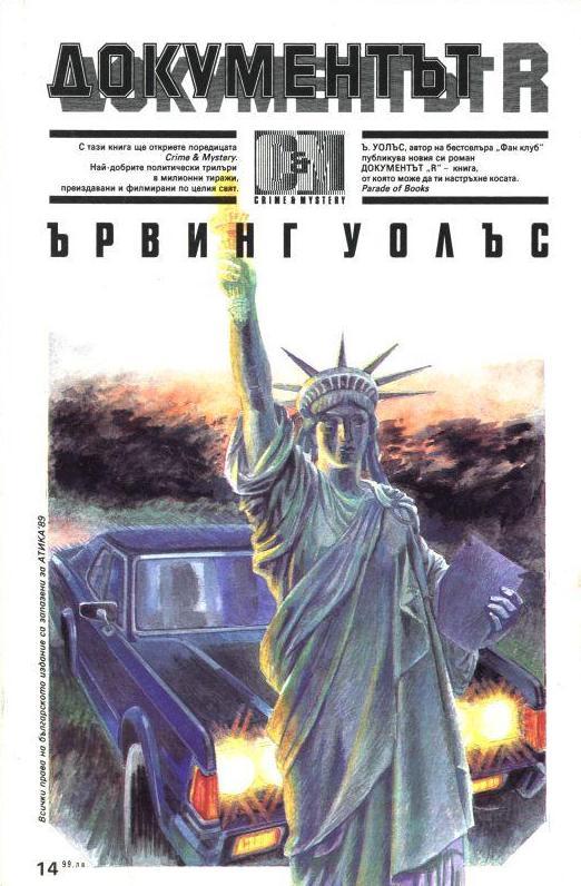 Загадъчната смърт на главния прокурор на САЩ съвпада с предстоящото гласуване на поправка към американската конституция, която в ръцете на една безчестна администрация сериозно би застрашила свободата на гражданското общество. За да пречупи несъгласните, директорът на ФБР Тайнън пуска в действие ужасяващата си колекция от досиета. Един по един шантажираните млъкват или загиват при неизяснени обстоятелства. Една случайност вкарва под ударите на шантажа и новия главен прокурор Колинс. Миг преди да бъде пречупен, той намира неочаквани съюзници в лицето на група бивши специални агенти на ФБР, прогонени от Тайнън.Политическият трилър прилича по нещо на автомобилите „Мерцедес“, на кока-колата и на онзи пазар, където ягодите се появяват не през лятото, а… в 6 часа сутринта.Това е причината, поради която у нас трилъри не можеха да бъдат написани, а и редките преводни заглавия останаха повече като екзотични изключения.Освен всичко друго, тези книги са и доста скъпи за българския издател. Е, добре… Но щом радват милиони читатели по целия свят, все някой трябваше да им даде и български адрес. Това е мисията на новата поредица „CRIME & MYSTERY“. Уверени сме, че след тази първа книга нашите приятели вече са много.Приятно четене и до нови срещи! Ървинг Уолъс |
