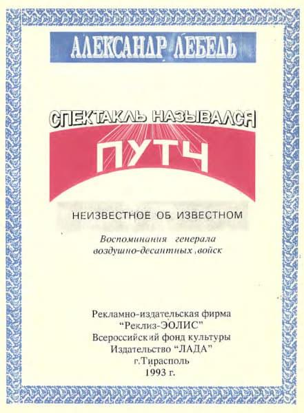 Воспоминания генерал-лейтенанта А. И. Лебедя, участника событий августа 1991 года в Москве, известных как «путч ГКЧП».