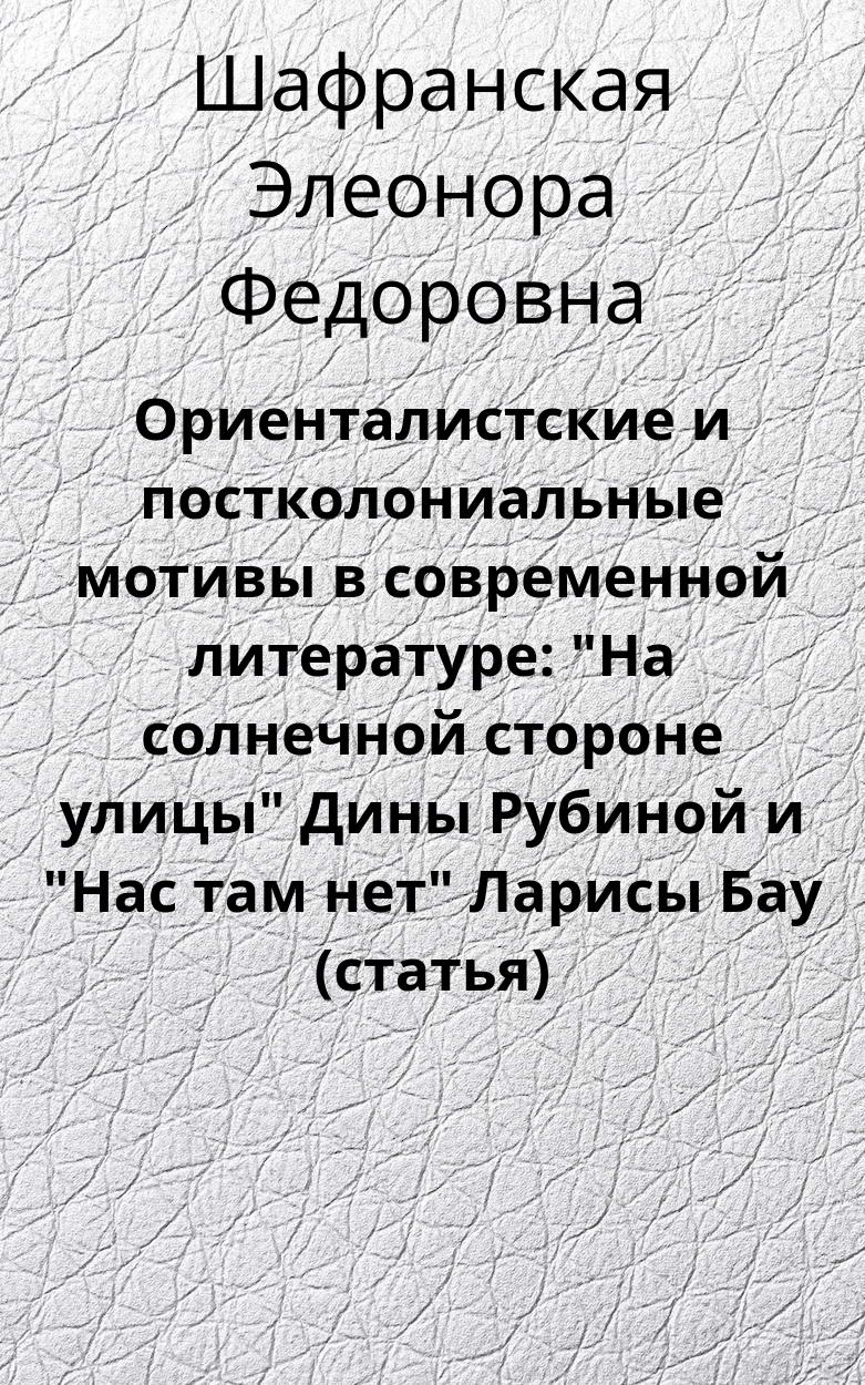 Ориенталистские и постколониальные мотивы в современной литературе: "На солнечной стороне улицы" Дины Рубиной и "Нас там нет" Ларисы Бау (статья)