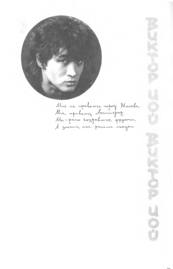 В книгу вошли наиболее интересные воспоминания, наиболее содержательные интервью и комментарии, дающие возможность читателям более объективно и в более полном объеме познакомиться с моментами творческой и личной биографии Виктора. В книгу входит множество ранее не издававшихся материалов: в первую очередь, это рассказ «Романс», написанный Витей в феврале 1987 года в знаменитой котельной «Камчатка». Публикуются тексты песен, известных прежде лишь тем, кто ходил на квартирные концерты группы ГАРИН И ГИПЕРБОЛОИДЫ в 1980 — 81 годах. Публикуется повесть Марианны Цой «Точка отсчета», приоткрывающая завесу «закулисной» жизни Виктора. Повесть А.Рыбина «Кино с самого начала» публикуется с незначительными сокращениями. |