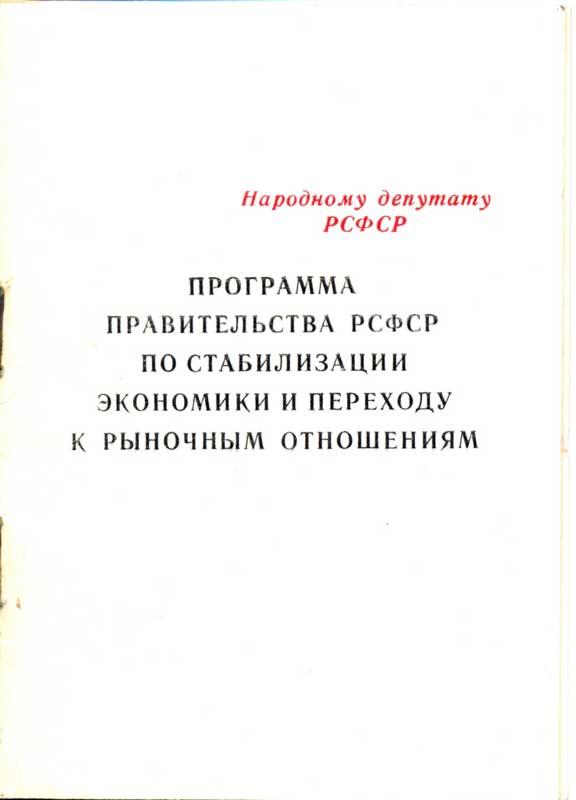 Программа правительства РСФСР по стабилизации экономики и переходу к рыночным отношениям