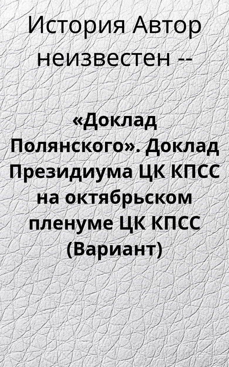 «Доклад Полянского». Доклад Президиума ЦК КПСС на октябрьском пленуме ЦК КПСС (Вариант)