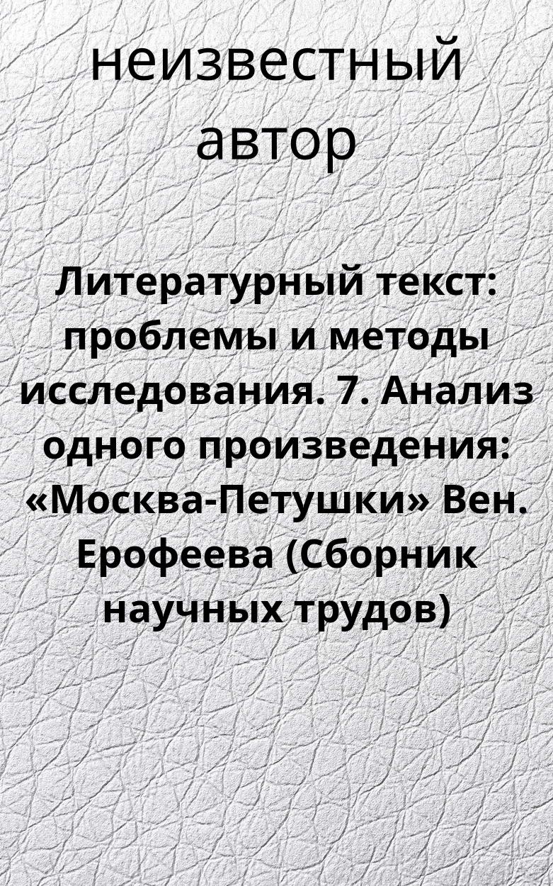 Литературный текст: проблемы и методы исследования. 7. Анализ одного произведения: «Москва-Петушки» Вен. Ерофеева (Сборник научных трудов)