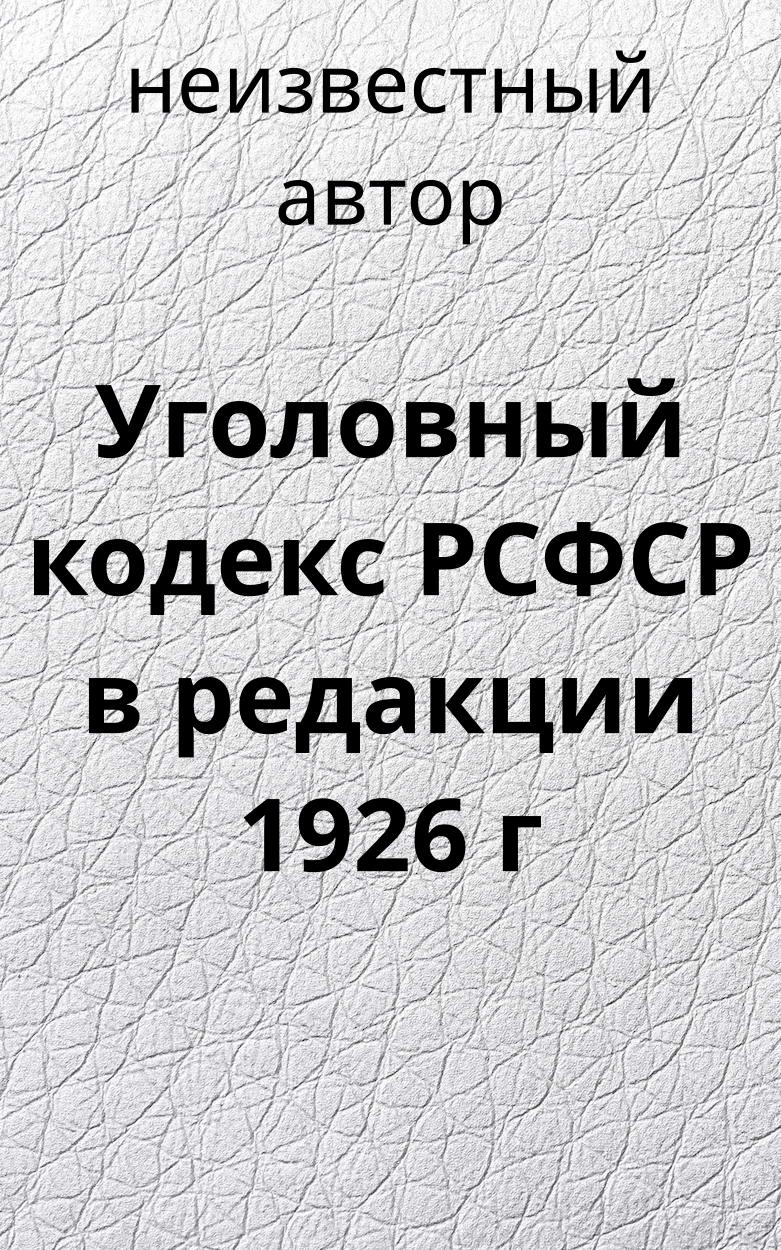 УК РСФСР в редакции 1926 г. Принят 2-й сессией ВЦИК XII созыва. Введен в действие с 1 января 1927 г. постановлением ВЦИК от 22 ноября 1926 г.Официальный текст с изменениями на 15 января 1956 г и с приложением постатейно-систематизированных материалов