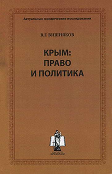 Монографическое исследование В.Г. Вишнякова на тему: «Крым: право и политика» посвящено исследованию актуальных проблем правового статуса Крыма и Севастополя. Особенность монографии состоит в том, что автор поставил задачу комплексно рассмотреть вопросы передачи Крыма и Севастополя из состава РСФСР в состав Украины, начиная с 1954 года по настоящее время, в контексте взаимодействия правовых и политических факторов. Содержание этого взаимодействия раскрывается с позиции как конституционного, так и международного права. Доказывается, что на всех этапах развития крымской проблемы с украинской стороны отсутствовала законная правовая основа, при этом проблемы Крыма и Севастополя решались путем политического давления на Россию и нарушения ее национальных интересов. Дается характеристика уступок российского руководства в вопросах защиты территориальной целостности России, а также принципиальной, государственной позиции группы депутатов Государственной Думы и членов Совета Федерации Федерального Собрания Российской Федерации при защите национальных интересов России. Большое внимание уделено активной позиции населения Крыма и Севастополя в борьбе за восстановление их статуса в составе России. Специальная глава содержит анализ возможных путей решения крымской проблемы в настоящий период.Являясь депутатом Государственной Думы Федерального собрания Российской Федерации (1993-1999 годы), В.Г. Вишняков принимал непосредственное участие в подготовке и реализации многих нормативных правовых актов, связанных с решением крымской проблемы.