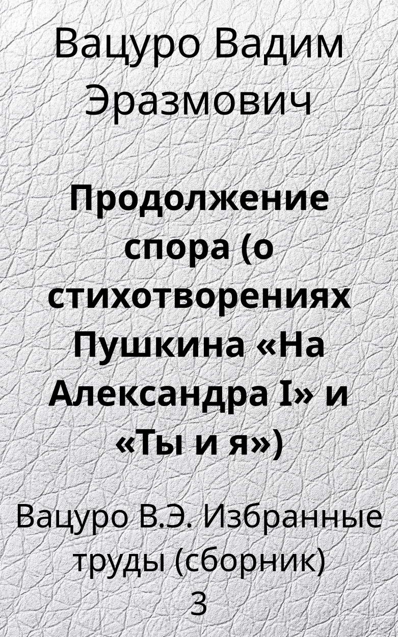 Продолжение спора (о стихотворениях Пушкина «На Александра I» и «Ты и я») (Вацуро В.Э. Избранные труды (сборник)[3])