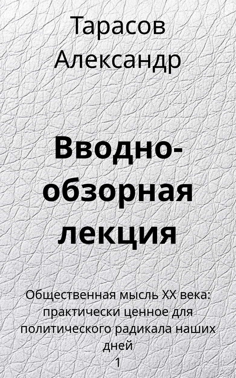 Вводно-обзорная лекция (Общественная мысль XX века: практически ценное для политического радикала наших дней[1])