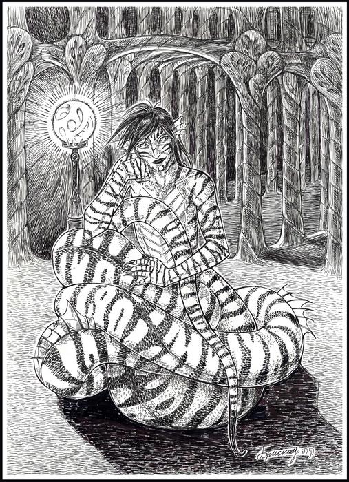 Что такое змеелюд? Это громадная змея, наделенная способностью мыслить, говорить и создавать. Что именно? Предметы, оружие, но чаще всего — неприятности. Что такое радужный змеелюд? Это то же самое, но в тройном размере, да к тому же не нужно забывать про то, что он может и остальных подключить к делу создания неприятностей. А что же такое линяющий радужный? Это полный… Не верите? Убедитесь сами! Только близко не подходите…